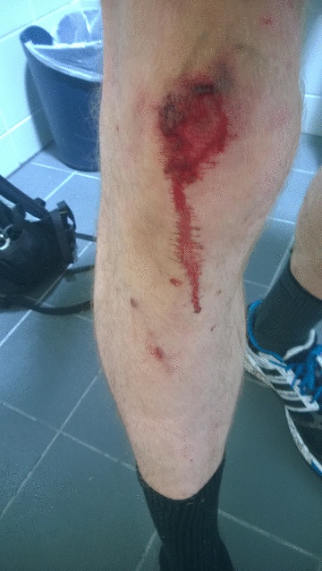 The cyclist quickly rode off leaving me standing looking at my leg and knee, cursing and trying to work out if I could even walk. Well eventually after considering a cab or seeking medical attention I made it to work at a walk, with an incidental purchase of frozen peas.